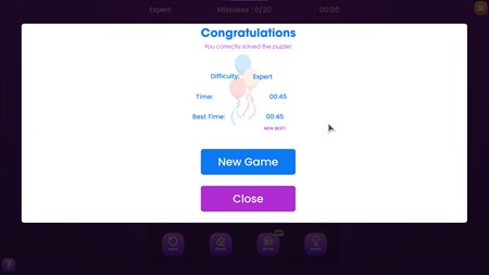 SELECT : "A" button on Controller, "Enter" key on Keyboard, or using Mouse on Sudoku Square Erase : "X" button on Controller, "DELETE/Backspace" key on Keyboard, or using Mouse on Erase button UI Hints : "Y" button on Controller, "H" key on Keyboard, or using Mouse on Hints button UI UNDO : Left Stick button on Controller, "U" key on Keyboard, or using Mouse on UNDO button UI NOTES : "B" button on Controller, "N" key on Keyboard, or using Mouse on NOTES button UI