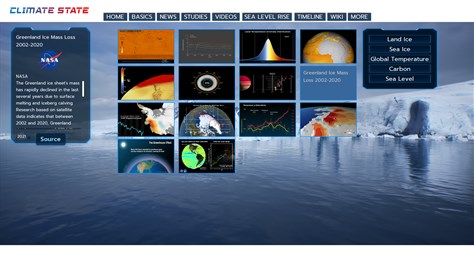 The Climate State app for Windows combines sources about the climate on Earth, including articles, wikis, and videos. Many content segments are also available for audio playback.