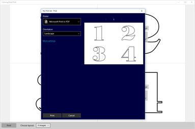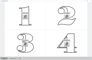 This application helps you print more coloring book images on a single page - it is easier for children to draw smaller areas and you save the trees :-). Application does not contain any sample images (due to copyright issues), you have to download them from internet.
