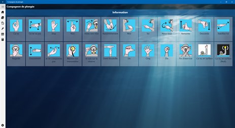 Compagnon de plongée vous permet : - d'enregistrer toutes vos plongées (Géolocalisation, caractéristiques, ...). - de les sauvegarder et les restaurer via OneDrive, vous pouvez ainsi les retrouver sur votre PC / tablette ou mobile. - de les importer depuis une sauvegarde SubSurface (v3) - d'avoir une liste détaillée des signes de plongées. - d'avoir les explications pour tous les types de remontées - d'avoir les tables MN90 et Nitrox - d'avoir une série de calculatrices (Air et Nitrox) - d'avoir des statistiques sur vos plongées