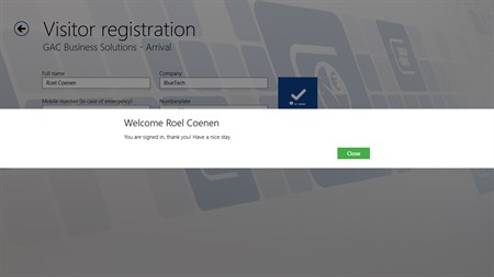 A general app to have people visiting your company sign in when they arrive and sign out when they depart. You can personalize the app with your own company name.