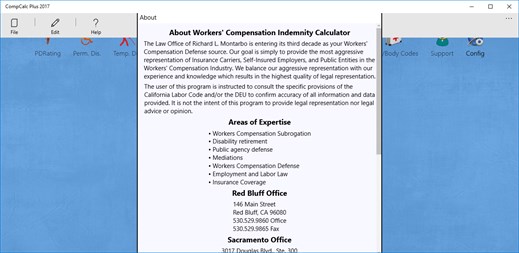 All Users of the CompCalc are instructed to consult the specific provisions of the California Labor Code and/or the DEU to ensure the accuracy of the information provided. It is not the intent of this product to provide legal representation, or legal advise. The user of the CompCalc Plus is encourage to retain legal counsel before using this product.
