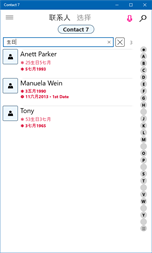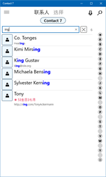 搜索联系人中的任何文本或按缩写筛选它们。