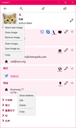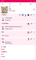 写邮件, 短信, 拨打电话, 查看地图应用程序中的联系地址, 在浏览器中打开 web 和社交媒体页面。
