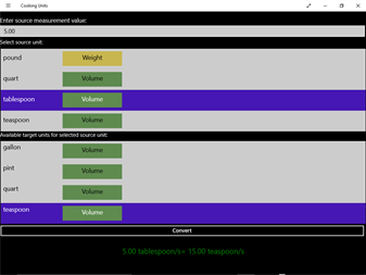 Cooking Units will help convert various cooking units used in home kitchens. Cooking Units has been designed to keep simplicity and ease of use for busy people. Cooking Units is supported by developer, please provide feedback via ratings and reviews for adding new features/new units and fixing bugs.