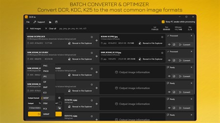 Not only a DCR to JPG converter or KDC/K25 to JPG converter, but also optimize size and quality output images.