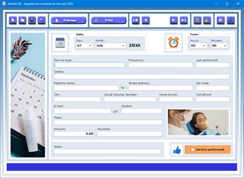 You can export the database of scheduled appointments to a Microsoft Excel file to be able to share the data with those who do not have the same app. The individual records of the dental services can be previewed or printed on paper.