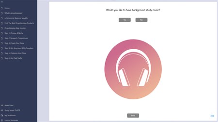 The app provides a set of tools to support your journey: * In-app notebook to work on your practical exercise, niche searching, track your progress, customized ideas, and successes. * In-app goal setting questionnaire. * In-app scheduling system to help you be consistent and complete the journey. * News Feed - Stay updated with new thoughts, ideas, tools, and tips with the live news feed feature. * Audio Music player with study focus music. * High end lessons and useful calculators.