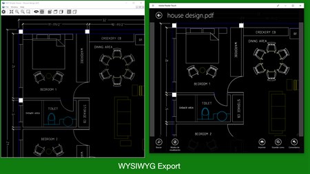 App Features: - Open DXF files, both ascii or binary supported. - Open DWG files up to version 2013. - Load files with 2D and 3D entities. - Export to PDF, SVG, IGES, PNG, JPEG, BMP, TGA. - Load a DXF or DWG file from a ZIP file. - Toggle show/hide layers and change colors. - Graphic operations for Panning, zooming, rotating (3D). - View your model in Orthogonal or Perspective mode (3D). - Can open multiple files of any size.