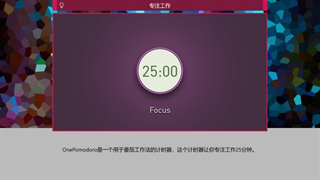 一个番茄钟是一个简单的、实用的番茄工作法计时器。它提供了多个有趣的主题,并提供了紧凑和全屏模式。同时它也是一个开源程序,您可以在下面地址找到它的源码: