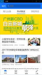 【主要功能】 1、学校地图:覆盖北京、上海、广州、深圳、成都、佛山六大城市,拥有六万多所幼儿园、小学、中学、培训机构的详细数据,帮助家长一秒知道附近有什么好学校与培训机构,深度了解学校与培训机构的口碑以及好坏。 2、学校对比:通过独创的“学校分析模型”,基于近十万条家长以及海量精准学校信息,帮助家长对比不同学校之间的每一个细节,清晰择校,上学无忧。 3、学区分析:基于官方文件,把每一所学校的对口招生区域、路段进行大数据分析,并把繁杂的招生文件抽丝剥茧,让家长只需要输入简单的指标,即可知道自己孩子对口和拟统筹的学校情况。 4、模拟面试:基于国内独创的语音视频交互技术,与海量民办及私立小学合作,打造出国内线实时幼升小面试模拟器,帮助家长足不出户,即可找到小学名师进行幼升小模拟面试。 5、优惠学:通过强大的选课能力,帮助家长找到优质的培训机构课程以及老师,让家长帮助孩子报读课程后,遇到不满意的老师,可随时退费,杜绝坑爹课程! 6、育儿微课 1.500+名师进驻,每周N场育儿讲座,足不出户,聆听大咖观点! 2.升学择校,兴趣培养,亲子关系,学习能力……15大主题,40大分类,覆盖孩子成长方方面面! 3.全程免费,即时提问,1对1交流,手指点点,瞬间解决育儿烦恼!