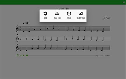 -【 矢量高清 】可以放大仍然保持高清 -【 钢琴播放 】可以使用钢琴声音进行播放 -【 可以移调 】可以需要进行曲谱移调 -【 可以打印 】可以根据自己的偏好进行打印 -【 导出MIDI 】可以生成导出MIDI文件