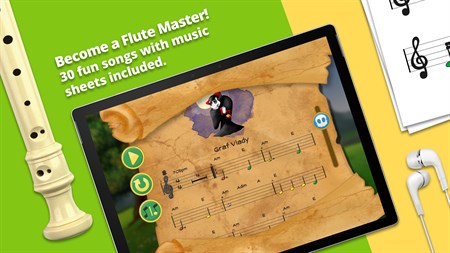 你将学习吹奏许多独特的乐曲,这些乐曲会逐步教你如何在竖笛上吹出每个音符。当你完成游戏的时候,你就可以成为吹奏竖笛的大师了!;)