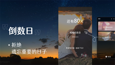 这是纪念日、倒数日以及重要日子的倒计时软件,是一款易于使用的免费应用程序,可提醒您生活中的重要事件。