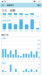 记录每天的运动量,计步器,走路步数,跑步步数,跑步距离等。开始屏幕动态磁贴。 可查看保存的历史运动数据。 后台计步。