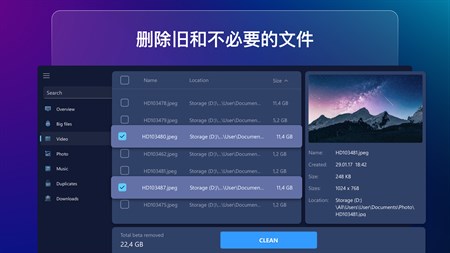 让您的电脑è¿è¡Œå¾—æ›´å¿« 如果计算机的缓慢工作æˆä¸ºä¸€ä¸ªçœŸæ£çš„问题,那么使用这个应用程åºä½ å¯ä»¥å¿˜è®°å®ƒï¼éšç€æ—¶é—´çš„æŽ¨ç§»ï¼Œè®¡ç®—机会积累旧文件,这会é™ä½Žå…¶æ€§èƒ½ã€‚åªéœ€æ‰«ææ‚¨çš„è®¡ç®—æœºå¹¶åˆ é™¤å¤§çš„å’Œä¸å¿…è¦çš„æ–‡ä»¶ï¼Œä»¥ä½¿è®¡ç®—机è¿è¡Œå¾—更快。