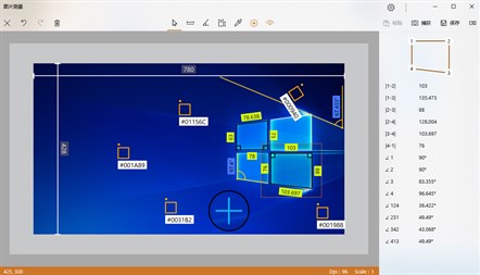 简单的图像测量工具,支持测量的项:线段的长度、两边的夹角、四边形的边长和图像上某点的颜色。