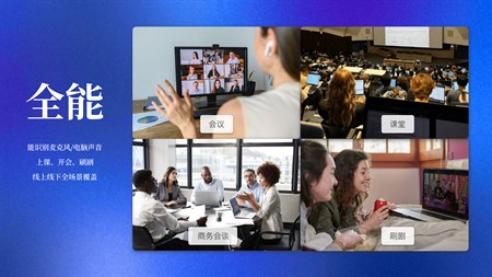 线上会议: 使用Zoom、Teams等会议软件/网站开线上会,将他人的发言实时翻译为你的母语。支持自动智能识别多种语言。