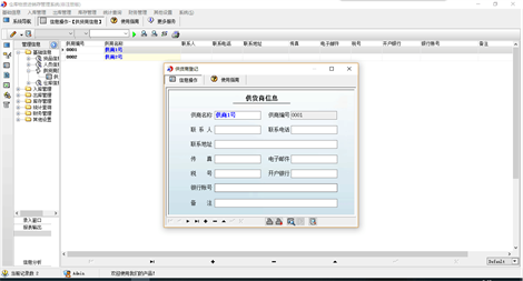 仓库物资进销存管理系统》适用于中小型企业、商户等管理仓库物资的软件。主要包基本信息、入库管理、出库管理、库存管理、统计查询等功能。本管理系统多处具有快速辅助录入功能,操作简单,易学、易用;处理功能高效强大,是协助您的好帮手! 主要功能包含: 一、基础信息:货品信息、人员信息、供货商信息、仓库信息 二、入库管理:入库登记、期间入库明细、期间入库汇总、退货登记、期间退货明细、期间退货汇总 三、出库管理:出库登记、期间出库明细、期间出库汇总 四、库存管理:当前库存明细、库存上限预警、库存下限预警、仓库库存明细 五、统计查询:期间利润统计、今日利润统计、利润分析 六、财务管理:其它收入登记、其它支出登记、期间收支汇总、应收账款统计、应付账款统计、退库账款统计 七、其它设置:数据初始化、公司信息、单位信息 本产品为试用应用程序, 为试用版(也称为体验版或非注册版),可以长期使用,没有时间限制。该版本与正式版的区别仅打印功能受限制以外,其他在功能上和正式版的单机版在功能上是完全一样的。同时正式版还可以提供网络版,可以在互联网、局域网环境下使用,并同时支持电脑和手机等设备共享信息数据。确保应用符合用户的真正需求。该系统整体构架简单,用户容易上手,操作快捷、方便,性能高效、强大。本软件由宏达软件发布,宏达软件提供几十个行业的管理软件使用和产品二次开发服务以及各行业管理软件的定制开发服务。如果希望使用功能完整的版本,请与我们联系,购买收费的正式版,并获得更好的服务。另外系统的开发性比较好,支持二次开发功能。