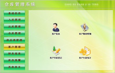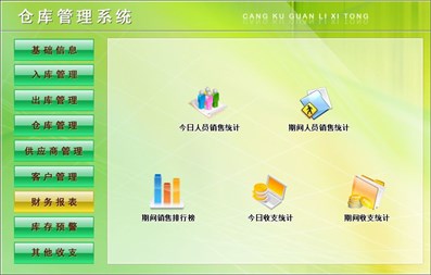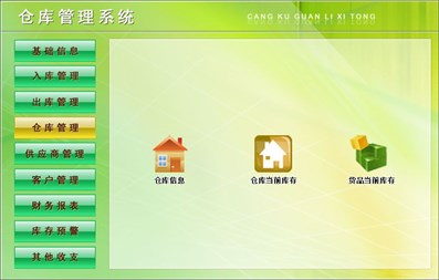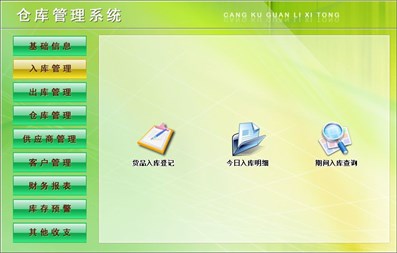 《仓库管理系统》是一款通用性极强的仓库及货物管理软件,软件适用于食品、服装、保健品、电子、贸易、物资、化妆品、电器等工业、商业、贸易领域的企业。主要包基本信息、入库管理、出库管理、客户管理、供商管理等功能。 主要功能包含: 一、基础信息:公司信息、货品分类、货品信息、人员信息、数据初始化 二、入库管理:货品入库登记、今日入库明细、期间入库查询 三、出库管理:货品出库登记、期间出库查询、今日销售利润统计、期间销售利润统计 四、仓库管理:仓库信息、仓库当前库存、货品当前库存 五、供应商管理:供应商信息、供商期间明细、付供商款登记、供商款统计 六、客户管理:客户信息、客户期间明细、客户付款登记、客户欠款统计 七、财务报表:今日人员销售统计、期间人员销售统计、期间销售排行榜、今日收支统计、期间收支统计 八、库存预警:库存上限预警、库存下限预警 九、其他收支:其他费用支出、其他费用收入、期间收支汇总