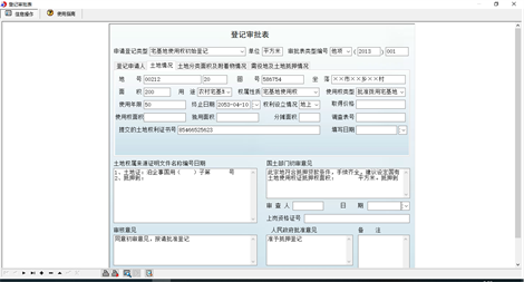 《土地登记信息管理系统》是一款针对国土行政主管部门日常土地管理工作而设计开发的,该软件的功能主要包括: 1、业务管理(登记申请书、登记审批表、土地登记卡、共用宗卡表、土地归户卡、国有土地使用证(集体土地使用证、集体土地所有证)、他项权利证明书、宗地图、地籍调查表) 2、业务查询(申请书查询、审批表查询、土地登记卡查询、土地归户卡查询、国有土地使用证查询、集体土地使用证查询、集体土地所有证查询、他项权利证明书查询、宗地图查询、地籍调查表查询) 3、基础数量(申请登记类型、单位性质、使用权类型、土地用途、申请人类型、申请人类型2、证件种类、审批表类型、权利设立情况、调查表界标种类、调查表界址类别、本单位信息)。 软件界面设计简洁、美观、其人性化的管理可以使用户轻易上手,提升服务质量,提高工作效率,是协助每个国土资源局合理和优化管理的好帮手! 软件特点如下: 1.界面设计简洁、美观、操作流程人性化,普通用户不需培训也能很快上手; 2.支持数据与execel的导出与导入。 本产品为试用应用程序, 为试用版(也称为体验版或非注册版),可以长期使用,没有时间限制。该版本与正式版的区别仅打印功能受限制以外,其他在功能上和正式版的单机版在功能上是完全一样的。同时正式版还可以提供网络版,可以在互联网、局域网环境下使用,并同时支持电脑和手机等设备共享信息数据。确保应用符合用户的真正需求。该系统整体构架简单,用户容易上手,操作快捷、方便,性能高效、强大。本软件由宏达软件发布,宏达软件提供几十个行业的管理软件使用和产品二次开发服务以及各行业管理软件的定制开发服务。如果希望使用功能完整的版本,请与我们联系,购买收费的正式版,并获得更好的服务。另外系统的开发性比较好,支持二次开发功能。
