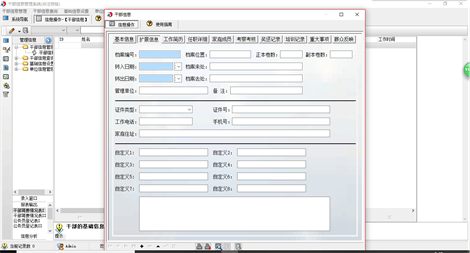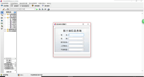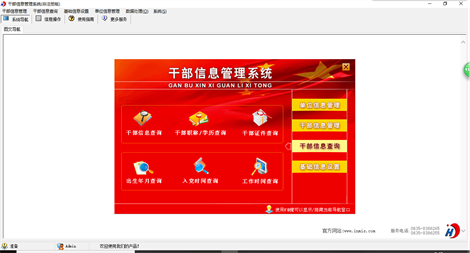 《干部信息管理系统》是一款管理干部信息的系统,本系统适应各级组织人事部门、机关及企事业单位对干部职工资料进行信息化管理,可替代传统手工操作,人员资料查阅、相关表格的生成和输出等项工作中,方便、快速、准确,是提高干部职工信息资料管理的有效手段。系统主要功能有:单位信息管理(单位信息登记)、干部信息管理(干部信息登记)、干部信息查询(按干部信息,职称/学历,证件以及出生年月、入党时间、工作时间等期间查询)、基础信息设置(民族设置,政治面貌设置,职务级别设置,职称等级设置,学历设置,学位设置) 《干部信息管理系统》包括如下功能模块: 一、输入功能: 该系统提供了对干部信息的资料录入功能。 二、查询功能: 您只需用鼠标点击一下相应节点,就可迅速查询统计干信息信息的情况,根据不同的查询统计条件显示出需要的结果。 三、报表功能: 根据查询或者统计出来的结果生成报表。 四:打印功能: 系统支持打印功能,如想打印信息单击预览报表上的打印按钮即可。 五、安全功能: 进入系统后,单击菜单“系统→工具→用户及权限”可以设置系统的各用户权限。 六、数据备份与恢复功能: 可备份在硬盘或其他可移动磁盘中,并可对备份的数据进行多项操作。 七、数据交换功能 : 有三种方式可以实现数据的交换:一是“信息交换”功能,可以任意导入、导出信息;二是“转换Access数据库”,可以将Access数据库(*.mdb文件)转换为基于本平台的信息库(*.dbi),该操作产生一个新的dbi文件,不会对原Access数据库进行任何更改;三是“与Excel文件交换数据”,该功能可以将基于本平台的信息库(*.dbi)转换为Excel文件,也可以将Excel文件转换为基于本平台的信息库(*.dbi) 八、适应性: 适应在Windows98|Me|2000|2003|XP|Vista|Win7系统上运行。 九、灵活的版本选择: 系统有单机版和网络版,可以安装在每台电脑上,分别是数据独立的单机版和数据共享的网络版。 本产品为试用应用程序, 为试用版(也称为体验版或非注册版),可以长期使用,没有时间限制。该版本与正式版的区别仅打印功能受限制以外,其他在功能上和正式版的单机版在功能上是完全一样的。同时正式版还可以提供网络版,可以在互联网、局域网环境下使用,并同时支持电脑和手机等设备共享信息数据。确保应用符合用户的真正需求。该系统整体构架简单,用户容易上手,操作快捷、方便,性能高效、强大。本软件由宏达软件发布,宏达软件提供几十个行业的管理软件使用和产品二次开发服务以及各行业管理软件的定制开发服务。如果希望使用功能完整的版本,请与我们联系,购买收费的正式版,并获得更好的服务。另外系统的开发性比较好,支持二次开发功能。