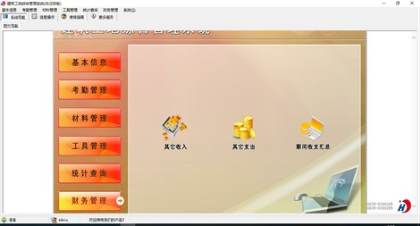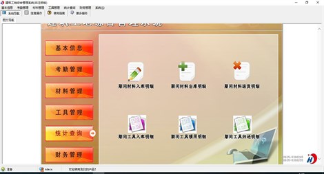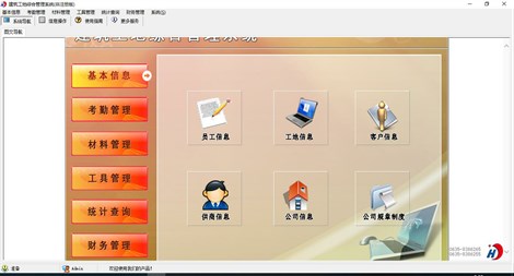 《建筑工地综合管理系统》是针对建筑工地多工地管理所需求而精心设计的一套高级版管理软件,此软件具有极佳的人机操作界面、极高的运行效率。主要功能:工地信息、考勤管理、材料管理、工具管理等功能。本管理系统多处具有快速辅助录入功能,操作简单,易学、易用;处理功能高效强大,是协助您的好帮手! 主要功能包含: 一、基本信息:员工信息、工地信息、客户信息、供商信息、公司信息、公司规章制度 二、考勤管理:考勤登记、员工期间考勤明细、员工期间考勤汇总、工地期间考勤明细、工地期间考勤汇总 三、材料管理:材料计划、材料计划审批、材料信息、材料入库、材料出库、材料退货、材料库存明细 四、工具管理:工具设备信息、工具设备计划、工具设备审批、工具设备入库、工具设备领用、工具设备归还、工具设备库存明细 五、统计查询:期间材料入库明细、期间材料出库明细、期间材料退货明细、期间工具入库明细、期间工具领用明细、期间工具归还明细 六、财务管理:其他支出登记、其他收入登记、期间收支汇总 本产品为试用应用程序, 为试用版(也称为体验版或非注册版),可以长期使用,没有时间限制。该版本与正式版的区别仅打印功能受限制以外,其他在功能上和正式版的单机版在功能上是完全一样的。同时正式版还可以提供网络版,可以在互联网、局域网环境下使用,并同时支持电脑和手机等设备共享信息数据。确保应用符合用户的真正需求。该系统整体构架简单,用户容易上手,操作快捷、方便,性能高效、强大。本软件由宏达软件发布,宏达软件提供几十个行业的管理软件使用和产品二次开发服务以及各行业管理软件的定制开发服务。如果希望使用功能完整的版本,请与我们联系,购买收费的正式版,并获得更好的服务。另外系统的开发性比较好,支持二次开发功能。