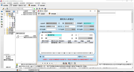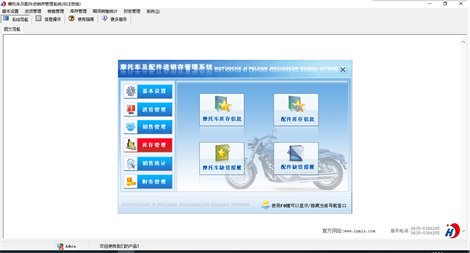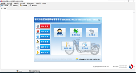 《摩托车及配件进销存管理系统》是一套针对摩托车、配件经销管理的软件,能够实现对摩托车、配件经销的管理,也可以方便快捷的查询摩托车、配件信息。该系统集信息采集、汇总、查询、统计等各种处理为一体,各种操作既可以通过菜单进行,又可以通过系统的管理树导航进行。信息录入智能化,极大提高工作效率。操作快捷、方便,性能高效、强大;使用易懂、易会。丰富多彩的特色令您惊喜! 系统主要包括基本设置(客户信息、供货商信息、摩托车信息、配件信息、员工信息),进货管理(摩托车入库/退货、配件入库/退货),销售管理(零售管理、批发管理、期间销售统计),财务管理(进货财务管理、零售财务管理、批发财务管理),期间销售统计(期间摩托车零售、期间配件零售、期间摩托车批发、期间配件批发)、库存管理(摩托车库存信息、配件库存信息、摩托车缺货提醒、配件缺货提醒)。 本产品为试用应用程序, 为试用版(也称为体验版或非注册版),可以长期使用,没有时间限制。该版本与正式版的区别仅打印功能受限制以外,其他在功能上和正式版的单机版在功能上是完全一样的。同时正式版还可以提供网络版,可以在互联网、局域网环境下使用,并同时支持电脑和手机等设备共享信息数据。确保应用符合用户的真正需求。该系统整体构架简单,用户容易上手,操作快捷、方便,性能高效、强大。本软件由宏达软件发布,宏达软件提供几十个行业的管理软件使用和产品二次开发服务以及各行业管理软件的定制开发服务。如果希望使用功能完整的版本,请与我们联系,购买收费的正式版,并获得更好的服务。另外系统的开发性比较好,支持二次开发功能。