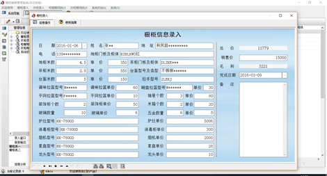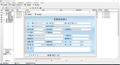 《橱柜装修管理系统》为家居装修行业管理订单的软件,包括橱柜和衣柜的管理,橱柜单据登记客户的姓名、地址、电话等和橱柜的具体情况:地柜门板及柜体、地柜米数,吊柜门板及柜体、吊柜米数、台面造型、台面米数、拉手型号、调味拉篮型号、碗盘拉篮型号、炉灶型号、烟机型号和龙头型号等,以及毛利。衣柜单据登记客户的姓名、地址、电话等和衣柜的具体情况:板材名称、板材方数、单价、门板型号、门方数、门框型号、腰线型号以及销售价等。可以分别打印橱柜和衣柜客户信息表,根据时间查询统计完成情况及盈利情况。 本产品为试用应用程序, 为试用版(也称为体验版或非注册版),可以长期使用,没有时间限制。该版本与正式版的区别仅打印功能受限制以外,其他在功能上和正式版的单机版在功能上是完全一样的。同时正式版还可以提供网络版,可以在互联网、局域网环境下使用,并同时支持电脑和手机等设备共享信息数据。确保应用符合用户的真正需求。该系统整体构架简单,用户容易上手,操作快捷、方便,性能高效、强大。本软件由宏达软件发布,宏达软件提供几十个行业的管理软件使用和产品二次开发服务以及各行业管理软件的定制开发服务。如果希望使用功能完整的版本,请与我们联系,购买收费的正式版,并获得更好的服务。另外系统的开发性比较好,支持二次开发功能。