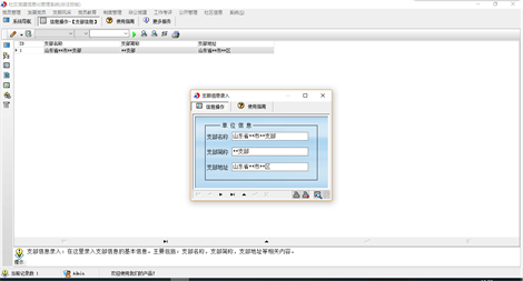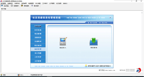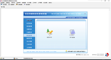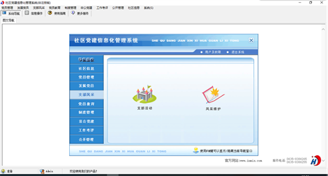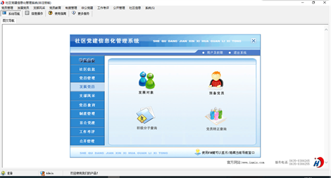 《社区党建信息化管理系统》是为社区党组织专门开发的一套管理系统,通过本系统的应用,规范了基层党支部的建设,提高了信息化管理水平。 系统主要内容包括: 1.党员管理(党员信息录入,党员流入登记,党员流出登记,党员信息查询) 2.发展党员(发展对象,预备党员,积极分子查询,党员转正查询) 3.支部风采(支部活动,风采维护) 4.党员教育(党员学习,学习查询) 5.制度管理(制度录入,制度查询) 6.非公党建(非公企业,非公党员查询) 7.工作考评(考核项目,考评工作,考核结果,考核查询) 8.公开管理(公开记录,公开查询) 9.社区信息(社区信息录入) 本产品为试用应用程序, 为试用版(也称为体验版或非注册版),可以长期使用,没有时间限制。该版本与正式版的区别仅打印功能受限制以外,其他在功能上和正式版的单机版在功能上是完全一样的。同时正式版还可以提供网络版,可以在互联网、局域网环境下使用,并同时支持电脑和手机等设备共享信息数据。确保应用符合用户的真正需求。该系统整体构架简单,用户容易上手,操作快捷、方便,性能高效、强大。本软件由宏达软件发布,宏达软件提供几十个行业的管理软件使用和产品二次开发服务以及各行业管理软件的定制开发服务。如果希望使用功能完整的版本,请与我们联系,购买收费的正式版,并获得更好的服务。另外系统的开发性比较好,支持二次开发功能。