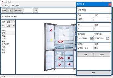 该软件用于记录家中的物品,不区分收纳和物品,物品可无限嵌套进其它物品中。 每件物品可设置照片,并设置内部物品的具体位置。 物品信息包括名称、分类、人员、生产日期、有效期和标签等。 可设置物品为私密物品,并设置密码保护。 可以按照不同设置搜索物品,支持以照片搜索物品。