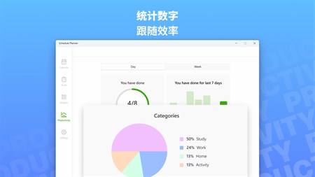 设置通知或添加重复任务,以便集中精力完成它们。我们也有统计数据,现在你可以直观地看到你随着时间的推移所取得的进展。 简单直观的设计可以让你专注于最重要的事情 — 您的计划。