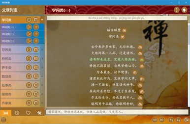 《格言联璧》一书是集先贤警策身心之语句,垂后人之良范,条分缕晰,情给理明。所谓是成己成人之宝筏,希圣希贤之阶梯也。 本应用的每篇文章都配有真人朗诵音频、拼音及翻译,可用于中小学生品德教育及成年人修身养性。