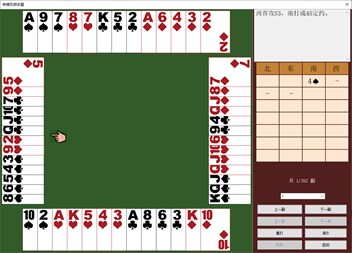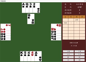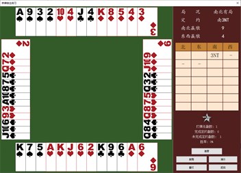 (6)桥牌打谱软件 提供手动发牌功能,为你练习各种打法提供一个打谱工具,相当于可以自己摆牌练习。 如果碰到感兴趣的牌例,可以用它打谱并保存下来,随时欣赏,支持对牌例背景的输入与保存。