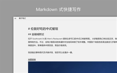 ■ Markdown 式快捷输入模式 ???? 想输入标题?按下 # + 空格,就这么简单。 橘子笔记支持实时 Markdown 式快捷转换,采用标准 Markdown 快捷键,让您可以不用考虑工具栏在哪,就能轻松切换格式。