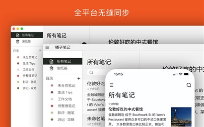 * 终于遇见你!*???? 橘子????笔记是一款漂亮、简洁又强大的多平台写笔记软件,它具备许多有趣的功能,会让您爱上写作。 橘子笔记支持多个平台的使用,无论是记录闪现的灵感,亦或是写写日记、整理思绪、储存文档,任您所想,非常方便。所有的这些也能无缝同步到您的其它设备上。此外,它还拥有多套精心设计的颜色主题,让您随时切换写作心情。