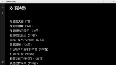 1. 是谁造天空(7首) 2. 神造你和我(16首) 3. 那灵所结的果子(210首) 4. 有主在我船里(313首) 5. 当我还是个小小婴孩(606首) 6. 跟随跟随(706首) 7. 听听听听听主耶稣声音(707首) 8. 和风轻轻吹(913首) 9. 看哪看哪我站在门外叩门(1015首) 10. 就是这样简单(1018首) 11. 我是世上光(1101首) 12. 基督要传家 13. 一千敬虔家