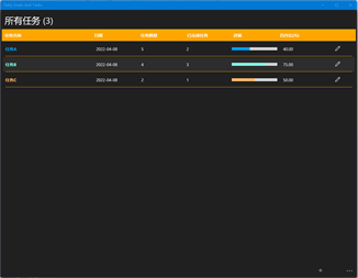自动统计任务的总数量以及已经完成和未完成的任务数量。 根据已经完成任务的数量与任务总数量生成对应的进度条和显示百分比(%)。