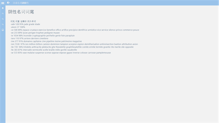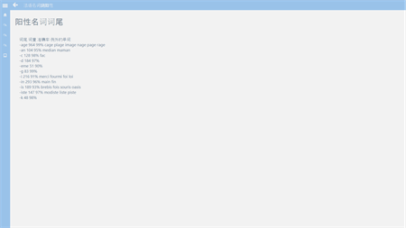 法语的名词无论是表示人还是物,都有阴、阳性之分。表示人和动物的名词,一般是按照自然性别来区分;但表示物的名词往往是约定俗成的,所以我们在记忆法语单词的时候一定要连同它们的阴阳性一起记忆。实际上,对于某些具有特定词尾的名词,其性别还是有章可循的,通过这个APP,你可以查询特定的后缀,你就可以正确地辨认大约75%的法语名词性别。