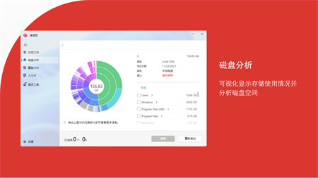 2024 年最出色的免费计算机清理程序。单击几下,即可清理垃圾文件,缓存,临时文件,重复文件并优化计算机,以获得更高的性能。 清理君可以帮助安全删除垃圾文件,并优化您的PC以提高其性能。 清理和加速Windows计算机变得更加容易。 360清理大师,Total PC Cleaner,腾讯电脑管家最佳替代清理软件。 清理君 堪称最强大、最出色的计算机清理和优化工具,布局设计简单直观,适合所有技能水平的用户。 核心功能: 垃圾文件清理 , 重复文件查找与清理 , 大文件扫描 , 磁盘分析 ## 垃圾文件清理 • 扫描并删除垃圾文件,包括缓存文件(如微信等)、日志文件和临时文件; • 删除浏览器缓存、Cookie 和历史记录,以保护您的隐私;多种浏览器支持,包括Internet Explorer, Edge, Chrome,Firefox及其他。 • 可让计算机保持干净,提高其性能。 ## 重复文件查找与清理 • 快速扫描硬盘中的重复文件 • 按文件名字,大小快速排序 • 快速选择及批量删除重复文件 ## 大文件扫描 • 快速扫描本地或可移动存储上的大文件和文件夹; • 标识正在占用存储的内容; • 安全定位并删除未使用的大文件,以释放更多磁盘空间。 ## 磁盘分析 • 交互式地分析存储空间; • 只需单击一次,即可用不同颜色展示磁盘中的每个文件夹的细分情况及其详细信息。 您可以选择性地删除以下类别中的文件和文件夹: - 系统缓存,垃圾文件 - 浏览器缓存,垃圾文件 - 应用缓存,垃圾文件 - 下载文件 - 回收站