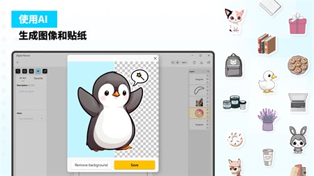 创意转化为AI艺术 利用人工智能功能发挥创意,通过文本提示轻松地生成卡通风格的图像。 将它们添加到您的规划器页面,并将它们转换为带有自动背景裁剪的令人惊叹贴纸。
