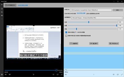 使用文字到语音技术,根据字幕为您的视频配音。 字幕文件包含时间标记,可以把配音准确适配到视频的时间点。 这是什么? 在社交媒体视频化的今天,有很多理由需要为视频配音。你的视频有不同国家的观众,需要为视频使用不同的语言来配音。或者,当你不愿意让您的视频用原音发表时,又或者,当你不满意自己的声音时,您可以为你的视频重新配音。 请一个配音演员为您的视频来配音价格是很昂贵的。不但价格昂贵,还效率低下。而文字到语音+字幕文件,能随时随地的为您的视频配音,价格可以忽略不计。 我们开发了 Voice Over App,包括了完整的功能 --- 您只需要打开视频和字幕文件,选择一个播音员, Voice Over 就自动为你的视频生成配音,并把配音合成到视频。