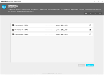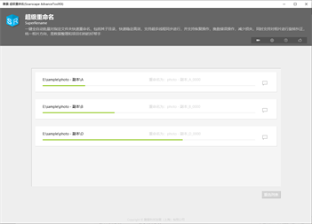一键全自动批量对指定文件夹快速重命名,包括其子目录,快速稳定高效,支持超多线程同步进行,并支持恢复操作,挽救错误操作,减少损失,同时支持对相片进行旋转纠正,统一相片方向,是数据整理和项目归档的好帮手