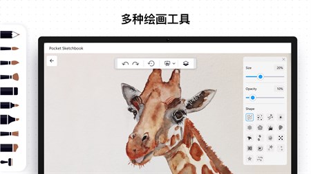 各种画笔 为你提供多多类型的艺术画笔来创作最完美的图。 > 用水彩笔打造轻盈细腻的画作 > 锋利的铅笔笔触 > 使用半透明记号笔为你的创作着色 尝试浏览我们的大量画笔以找到你喜欢的!