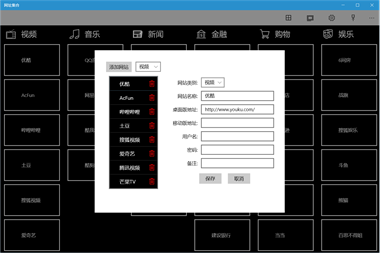 Windows phone很多常用软件的缺失造成使用上的不便,此软件为了解决这个问题,提供了一些常用的网页应用集合,并且你也可以自定义分类和网址,保存最常用网站的桌面版和移动版地址。 本软件也提供了保存用户名和密码的功能,在网站登录时可以查看提示,可以复制用户名提供方便。为了安全起见,建议密码不要保存明文,而应保存部分掩码的提示信息。