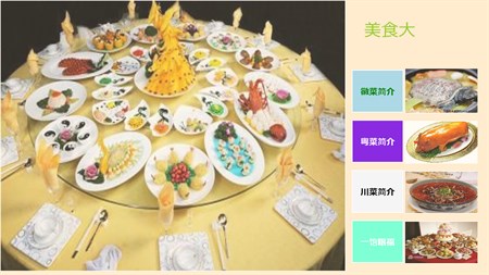 这是一款介绍中国三大菜系的软件,主要讲诉了徽菜,粤菜和川菜的由来以及代表菜和做法。