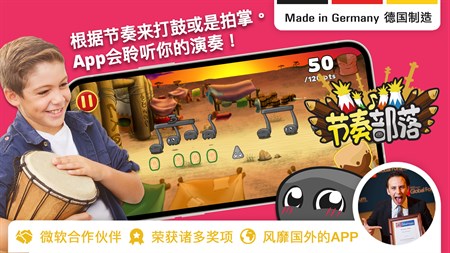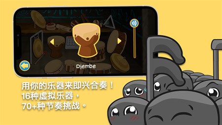 在这场冒险旅途中,你将学习到阅读乐谱的基本技能,通过演奏打击乐器来增加你的节奏感。打开你的设备,让我们马上开始吧!
