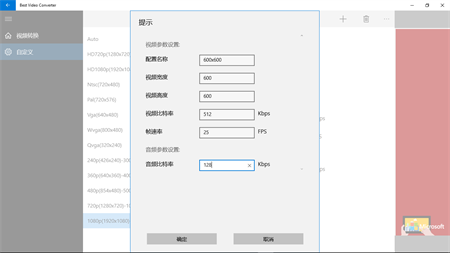 完全的自定义转换格式: 你可以完全自定义目标视频的大小,比特率,帧速率和其他参数.