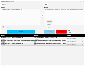 语言翻译工具Pro - 支持翻译90多种语言,是您办公与学习必备的效率工具。翻译历史记录存储在本地数据库,可以按年份、月份、所有日期查询。