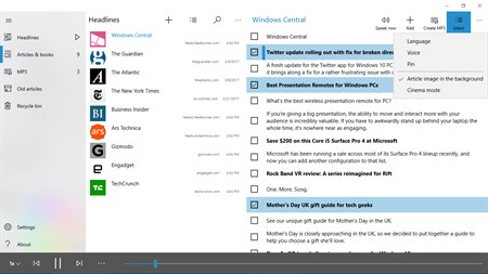 • 阅读网页及文章 • 订阅和同步RSS订阅源 • 与多种应用程序共享和集成 • 支持文档和电子书格式:.docx、.pptx、.odt、.odp、.epub、DAISY、.fb2等 • 导出:音频文件、带批注的.docx文档